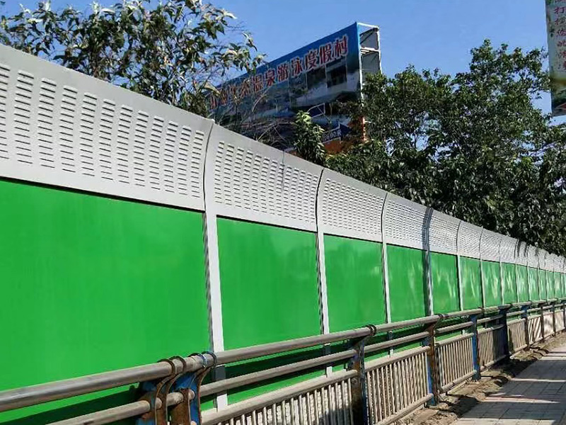 橋梁聲屏障是以吸聲材料為芯材,采用彩鋼夾芯板聲學(xué)構(gòu)件組裝成的吸、隔聲屏障。彩鋼聲屏障吸聲型聲學(xué)構(gòu)件可加工成百頁窗式、穿孔式、微穿孔式和開槽孔式等若干種吸、隔聲型聲學(xué)單元。百葉窗和穿孔的吸聲彩鋼復(fù)合板中、高頻隔聲性能較好,不開槽孔的彩鋼復(fù)合板聲學(xué)構(gòu)件對中、低頻隔聲性能較好。因此可根據(jù)噪聲特點(diǎn)選用不同結(jié)構(gòu)形式的聲屏障。